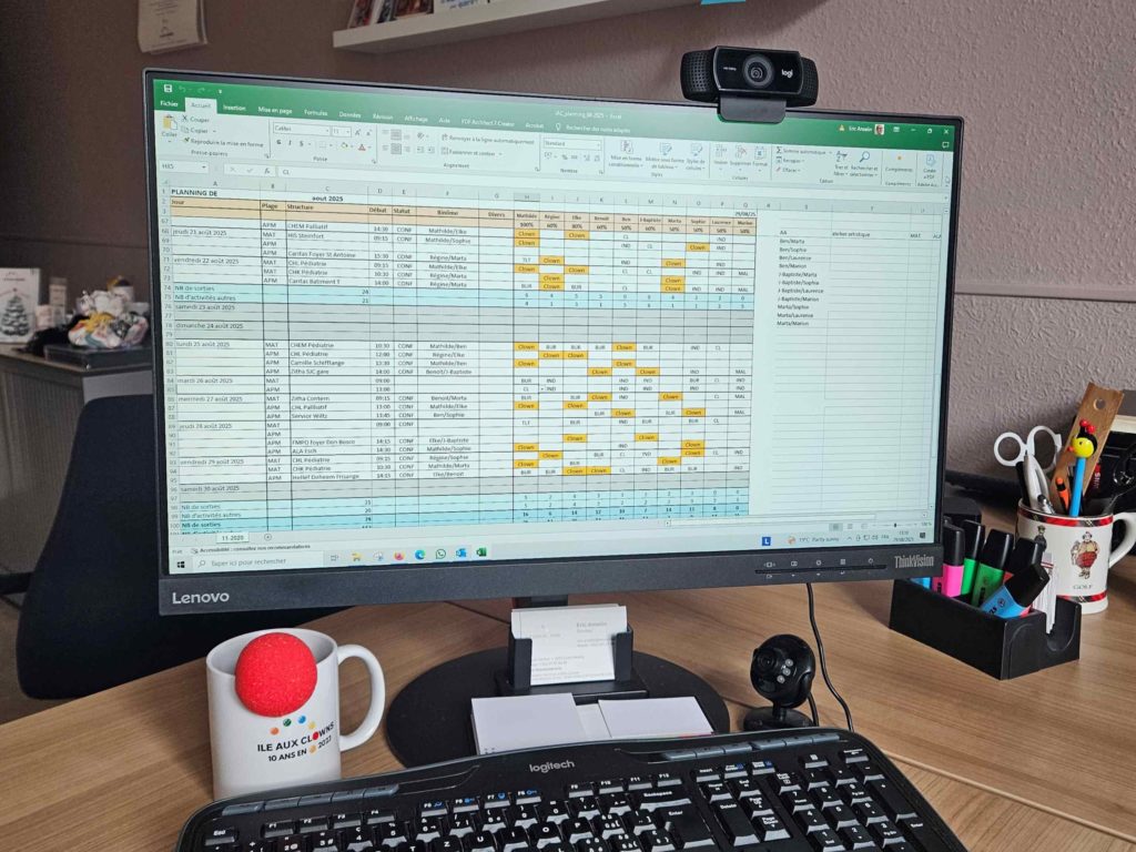 L’établissement du planning est avant tout une question d’équilibre à trouver entre nos besoins essentiels (comment assurer chaque mois entre 50 et 60 sorties avec un binôme de clowns) et nos ressources (les périodes de travail de notre équipe de 9 clowns hospitaliers).